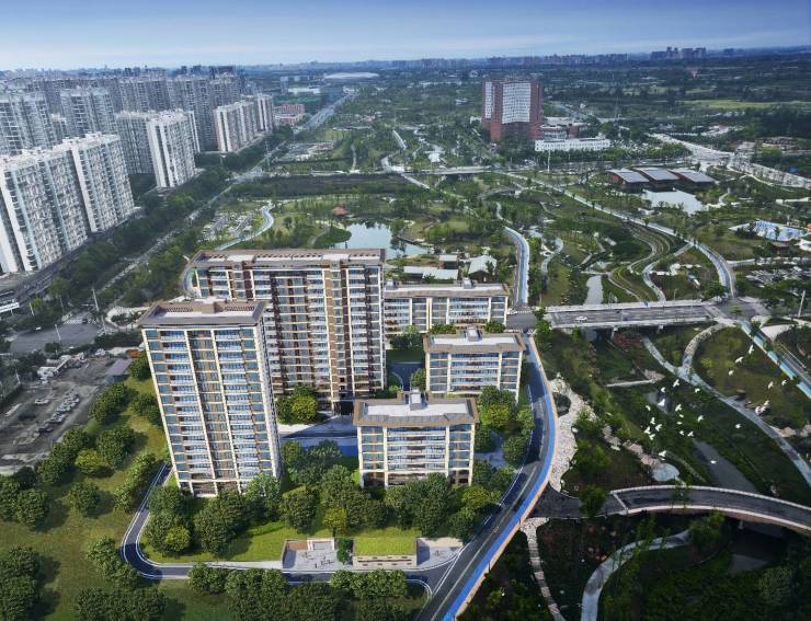 朗樾晴川依托位于驿马河公园内的独特优势,采用无边界社区设计,建筑以行列式布局,全楼栋板式结构,使社区与千亩驿马河公园相融共生。