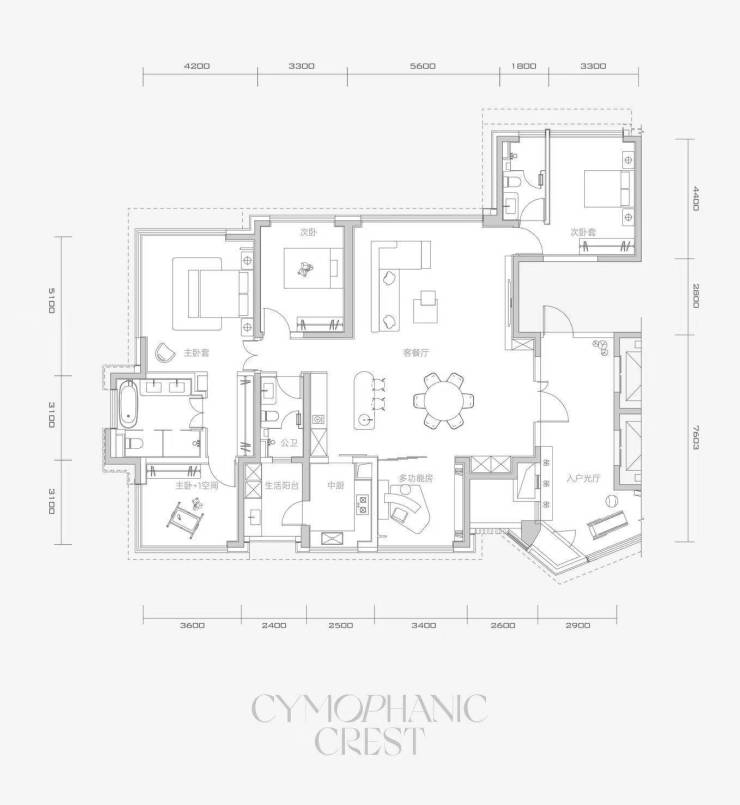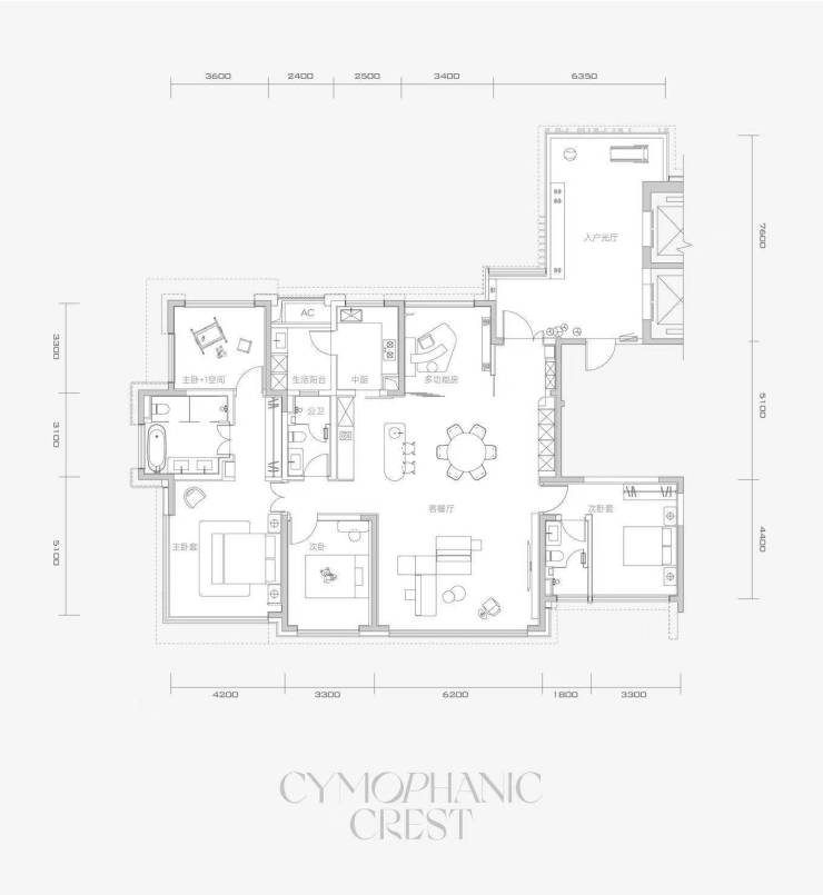 高层有3种户型,4室3厅4卫的260㎡户型、3室3厅4卫1多功能房的286㎡户型以及3室3厅5卫2多功能房加1保姆间的350㎡户型,首批推出192套精装房源,预计3年交付。