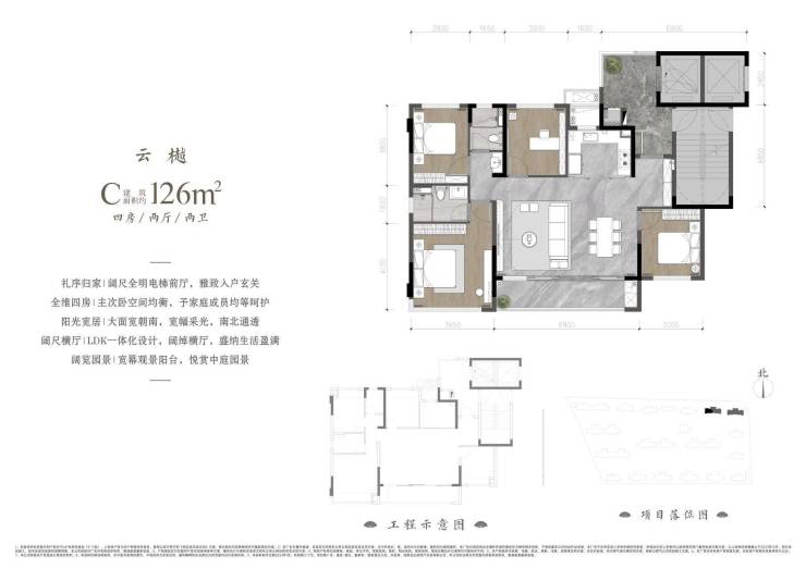 户型面积:约108(已售罄)-126-139㎡(全系四房2 卫)