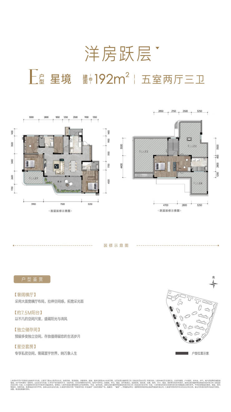 165㎡(6F,顶楼为192㎡顶跃户型);192㎡(6+1F);总楼层:6F;层高:3.1米