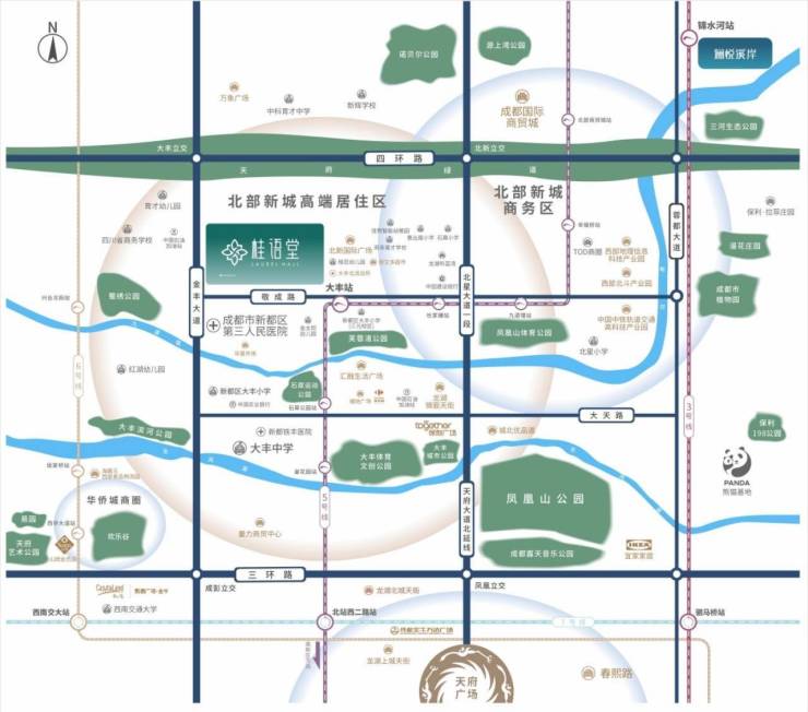 紧邻优品道、锦宸天街、保利大都汇、汇融广场等城北地标商业;半小时辐射太古里、天府广场等轻奢商圈。