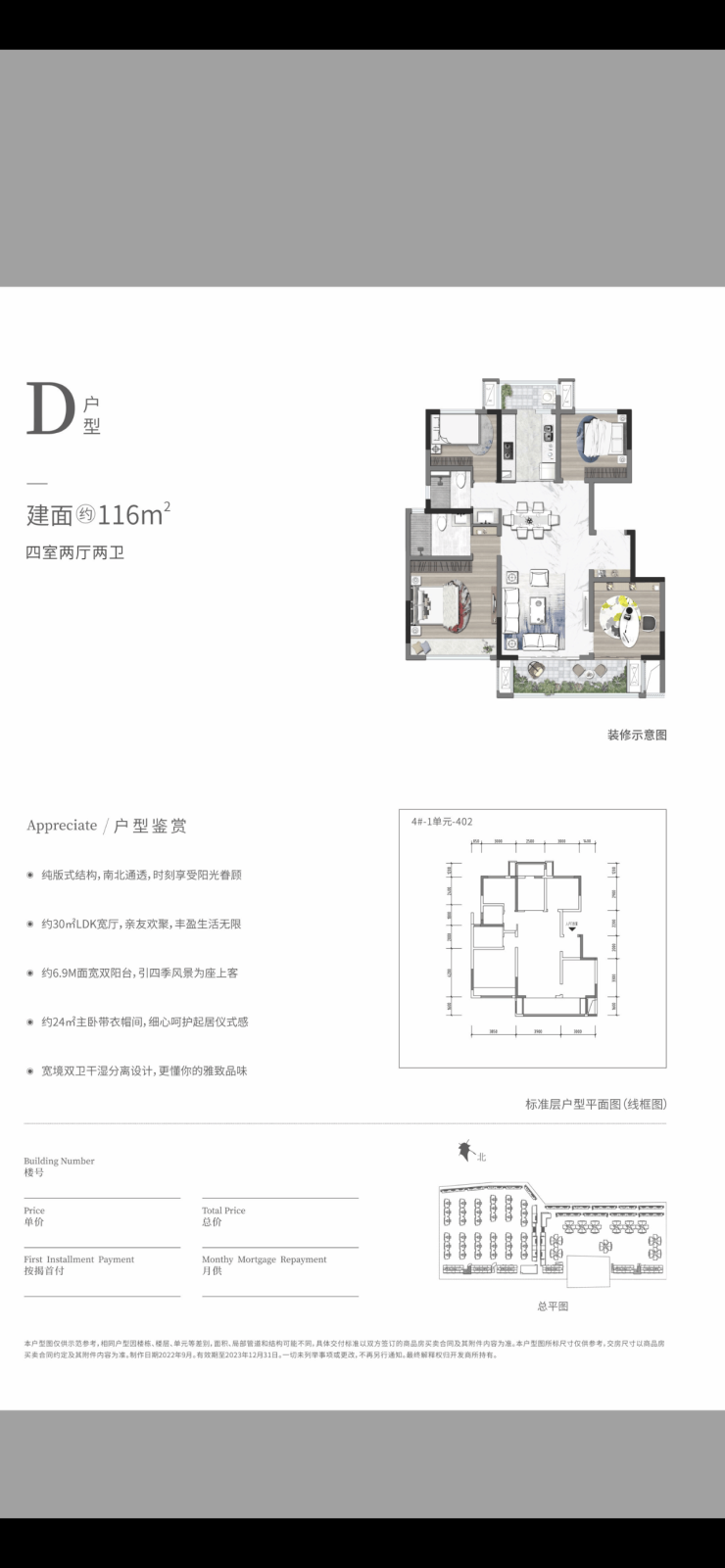 在售产品:洋房(11F),建面约116㎡. 楼间距约28米