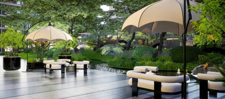 项目介绍【黑马园林景观】:超大水景泗水而踏,风雨连廊踏水而归,超大楼间距/户户向阳采光