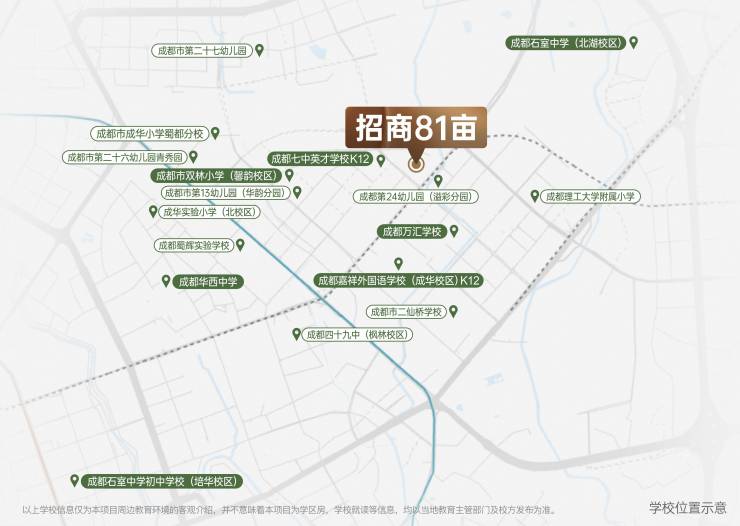 4、本项目宣传资料对项目周边幼儿园、学校等教育配套资源的介绍旨在提供相关信息,并不意味着本公司对就学安排作出承诺。教育资源的名称、办学性质、办学规模、学位设置、开学(班)时间、招生条件、收费标准及招生区域存在调整的可能,应以政府教育主管部门及办学方颁布的政策规定为准。