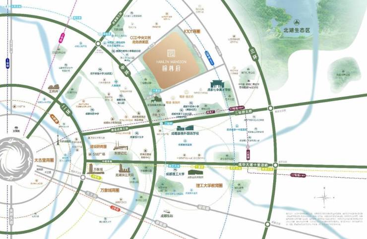 ·约500m即至商业名片区合信k101(成华文旅新名片,占地约145亩)。四大繁华商圈:万象城商圈、建设路商圈、城北王府井商圈、K101商圈