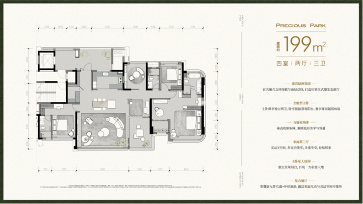 1.室内打造景观中轴 | 2.全空间独立花园配置 | 3.主城唯一室内四花园
