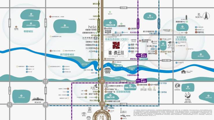 三纵:天府大道、天柏路,金凤凰大道;