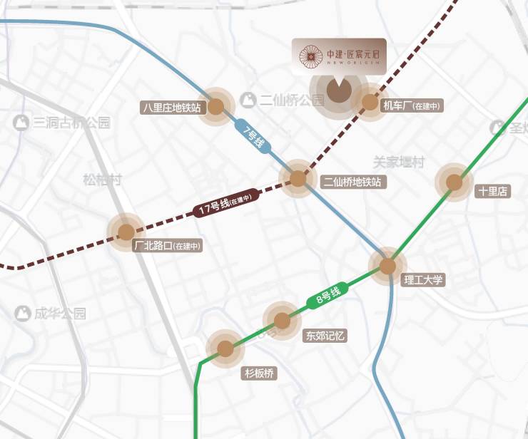 紧邻地铁 17 号线机车厂站,近邻二仙桥 TOD,同时衔接中环路及地铁7号线、17号线(在建)。