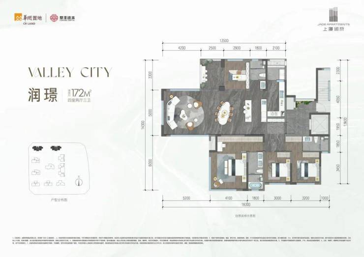 上璟润府总占地约400亩(含配建),其中住宅占地约173亩,容积率仅1.88,分布于六个地块,绿地公园占地约128亩,河道水域占地约35亩。