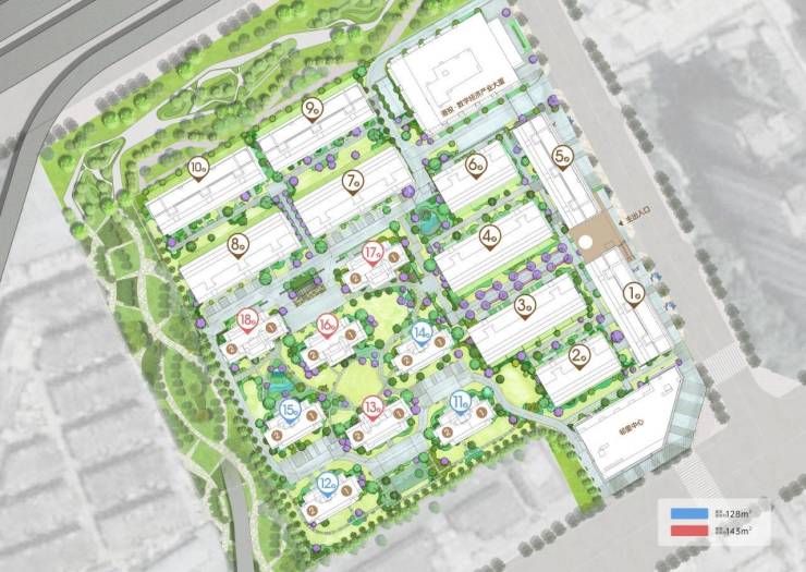 ——整体规划理念:与千亩公园相融合,以”先建公园,再建房子“的理念,在63亩的土地上,结合2.5低容积率、12%低建筑密度(住宅区),打造8栋、绿地率35%的臻稀住宅,8栋住宅一楼全架空,为业主的户外活动提供更充裕的空间,产品上打造全板式两梯两户的宽居户型(128㎡三房/143㎡四房)。