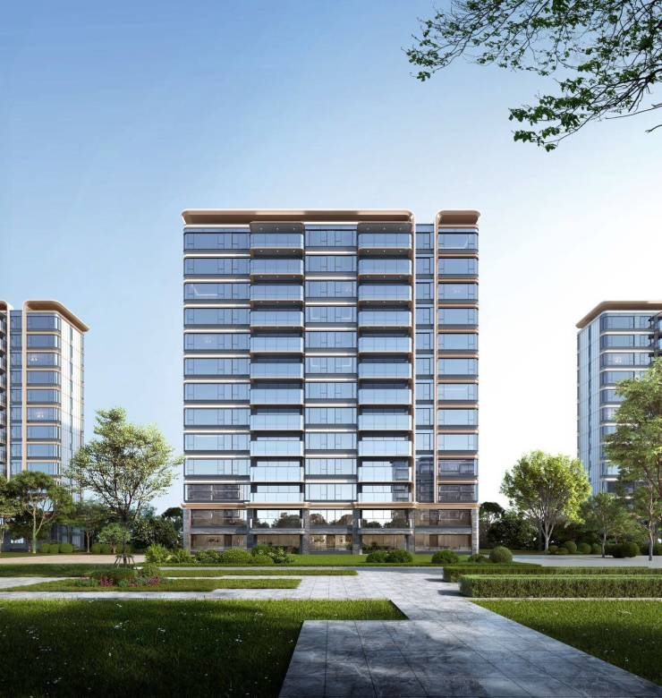 项目是当前成都新房市场里难得的百亩大盘,外立面采用了大面积的玻璃、铝板金属线条,背面也有格栅、浅色系真石漆等,符合高端改善标准。