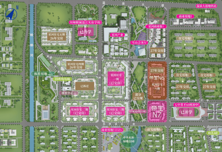 当星河帝宝N7交付之时,周边道路交通、生态公园、顶级学校、繁华商业、产业园区、住宅基本都完美呈现了,即刻享受大城繁华!
