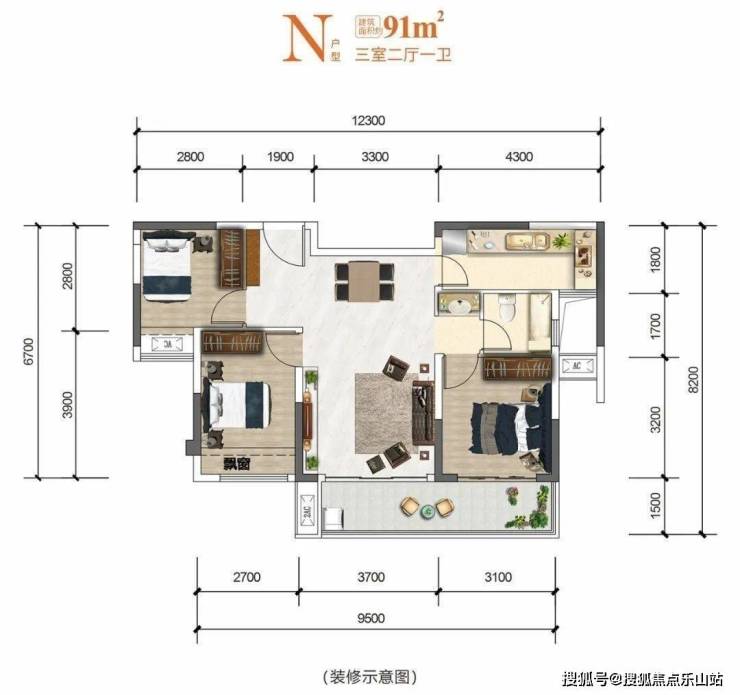建面约91㎡三房户型,更值一提:长度超12米、主采光面朝中庭的「四开间」户型,主卧、次卧、客厅均拥有中庭景观视野。同时配置了面宽约6.8米、直面中庭景观的景观阳台,尺度与市面上许多140㎡级的产品相当。景观阳台与客厅、主卧相连,舒适度极强,三房配置也能够满足二孩家庭需求。