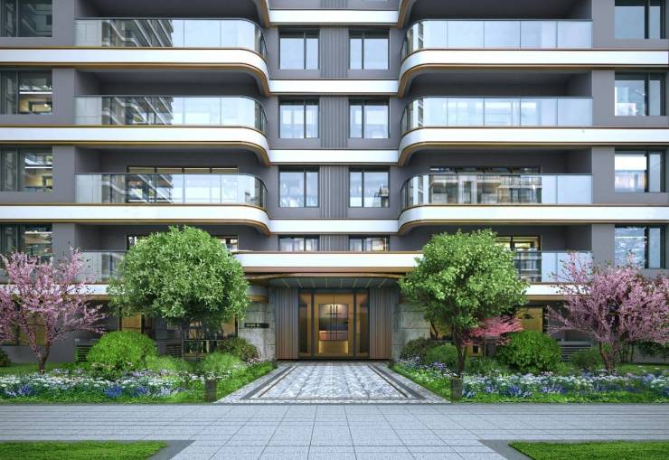 板块内唯一新加坡原筑光感立面设计,大量海浪线条设计,结合大面积玻璃幕墙