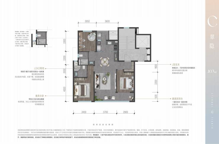【主力户型】:A户型 建面约100㎡三室两厅两卫
