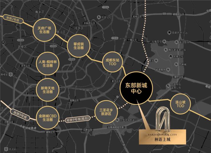 锦江大道3.5环线之上,串联金融城-潘家沟-白鹭湾-三圣乡-东部新城中心,新兴五大居住板块。集世界级政策导向、高端产业、公园生态、前沿规划和高端住宅基因于一体,撑起成都楼市的价值天花板,代表成都生活的至高水准。