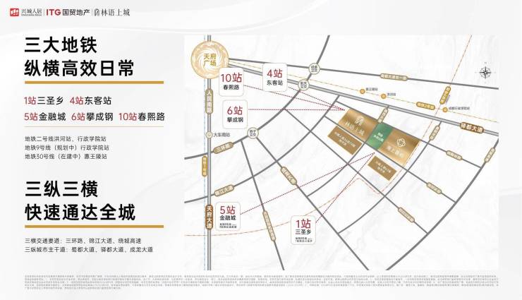链接成龙大道、东大街-驿都大道、蜀都大道,集萃丰富多元的交通、商业、学校、医疗、生态等配套设施,便捷生活触手可及。