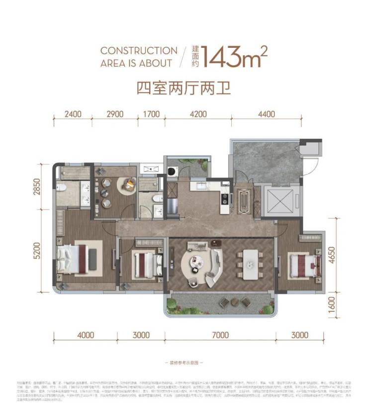 总户数:461户 梯户比:2T2户纯板式,户户独立入户 楼层情况:12F-13F 积段:约143㎡、约170㎡全精装改善四房