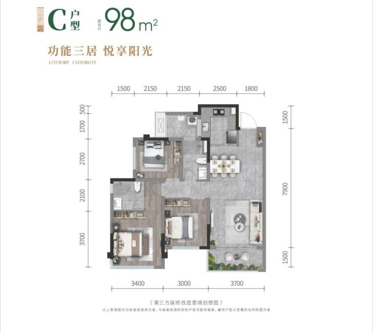 产品类型:高层(精装): 98m²、110m² 小高层(清水):121m²;总层高:小高11F、高层18F