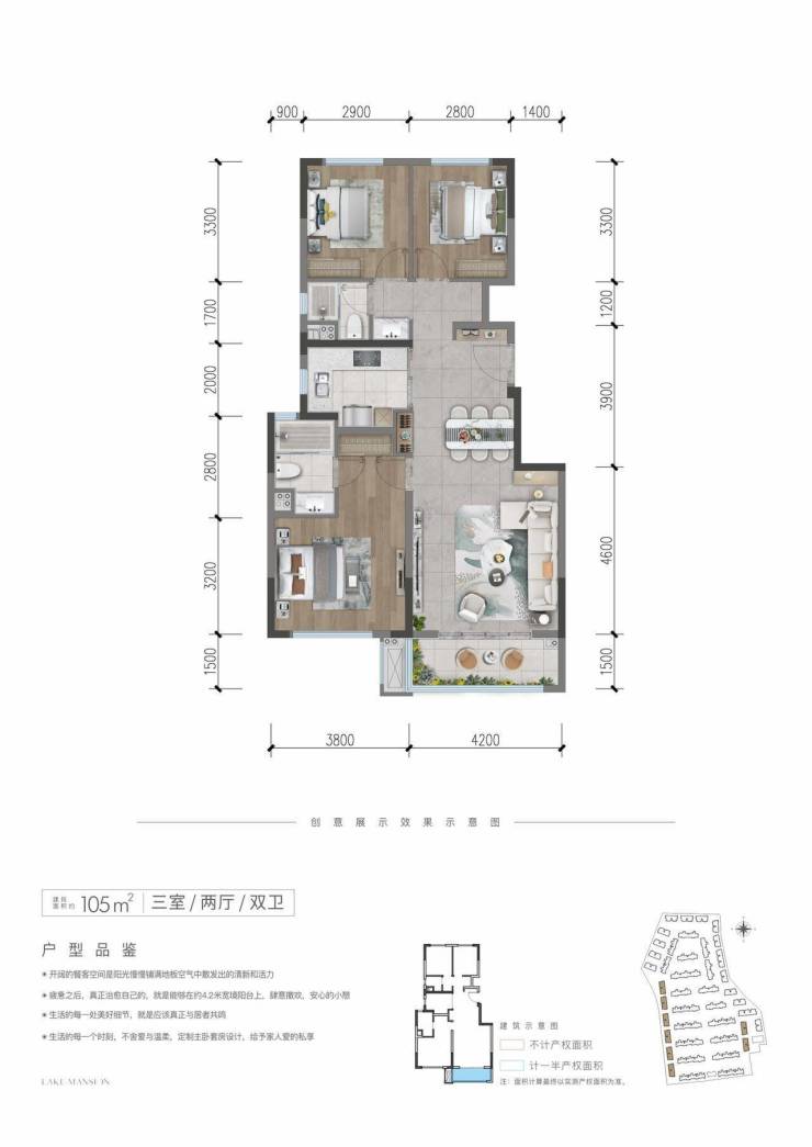 105平套三双卫洋房亮点:
