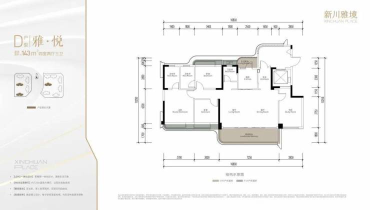 产品面积:132㎡四室两厅两卫、143㎡四室两厅二卫