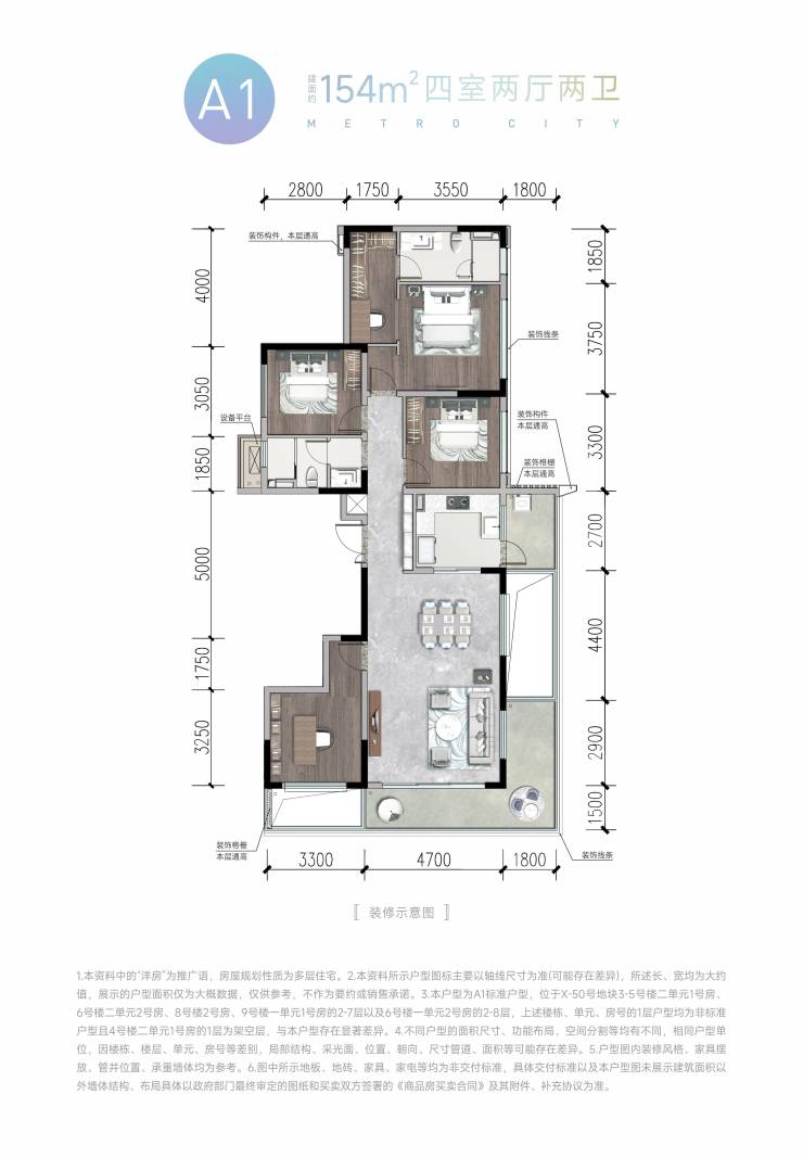 所有户型精装带三大件(地暖、 中央空调和新风系统)