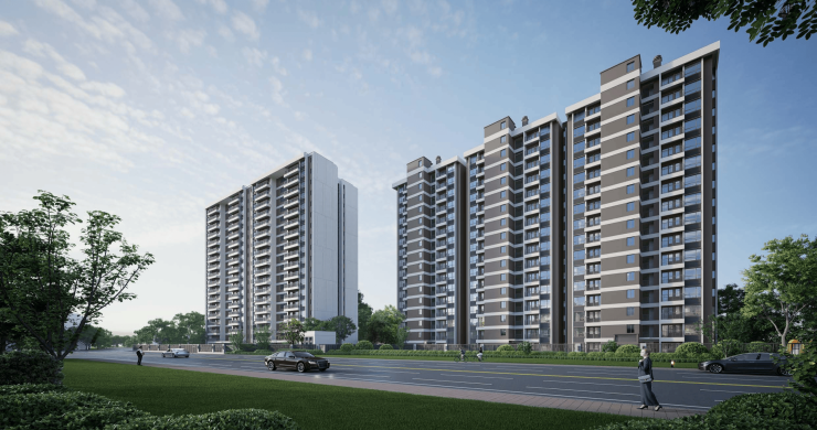住宅由2栋高层组成,1号楼为两单元16层2T2户住宅,2号楼为3单元18层2T4户,北临香城大道,东临宝光大道