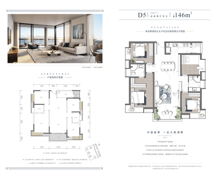 纯低密规划452户,全改善产品(120-146㎡湖居高层 165㎡经典全景舱 224㎡合院全景舱287㎡平墅全景舱)