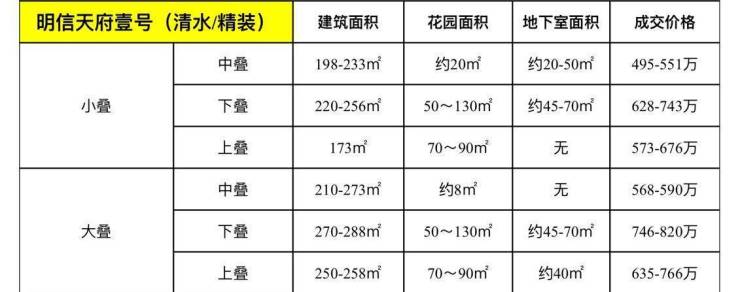 项目地址:四川省成都市双流区元秀路与昆华一路交叉口东北60米[1] ✅ 占地面积:约106亩 | 产品业态:叠拼别墅 ✅ 产品面积:173-290㎡源湾叠院 ✅ 单价区间:22326元/㎡起 | 总价区间:480万起 ✅ 容积率:1.8 | 绿化率:35% | 楼层状况:上、中、下叠 ✅ 层高:叠拼3.1-3.3米 | 开发商:明信集团 ✅ 物业公司:成都优居 | 物业费用:叠拼3.5元/㎡/月 ✅ 叠拼公摊:10-12.5% | 交付标准:清水交付 / 精装交付 ✅ 交房时间:清水2025年3月、精装2025年9月(准现房,施工稳步推进,交付有保障) ✅ 项目定位:大源南·天府五街惟一精装准现房别墅,主打高端改善叠拼业态,适配高端改善家庭