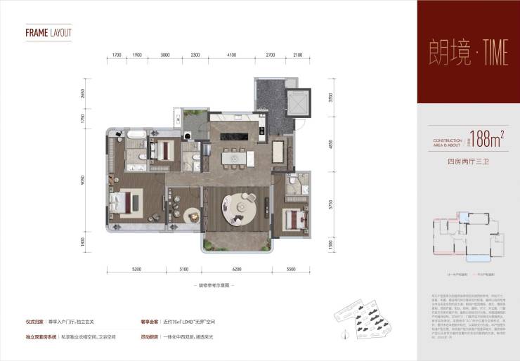 本广告为要约邀请,买卖双方的权利义务以商品房买卖合同为准;本广告中所述长、宽、均为大约数值,面积均为建筑面积。本广告对项目周边交通、教育、商业等配套的描述仅为提供相关信息,不意味着本公司对此作出承诺。在法律法规允许范围内,开发商保留本资料修改的权力,敬请留意最新信息。制作时间:2024年3月