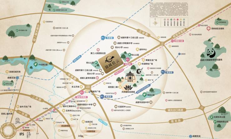 地铁3号线,与地铁1号线、地铁10号线(建设中)共同交织出轨道交通网,快速串联春熙路、金融城等核心区域。中环路、二环路、三环路、昭觉寺南路等主干道贯穿城市,从容掌握生活的张弛节奏。