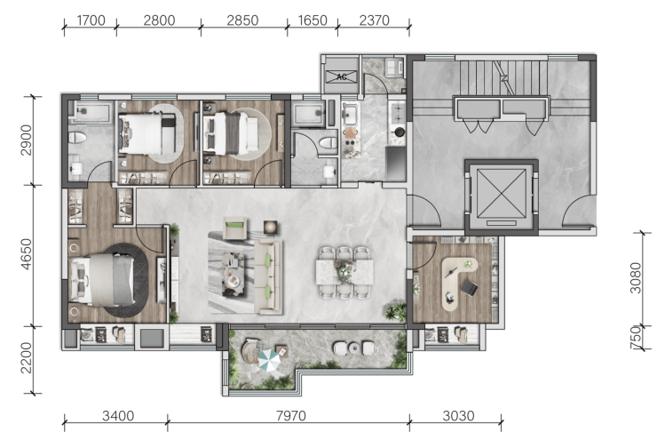 产品面积段:115-126㎡