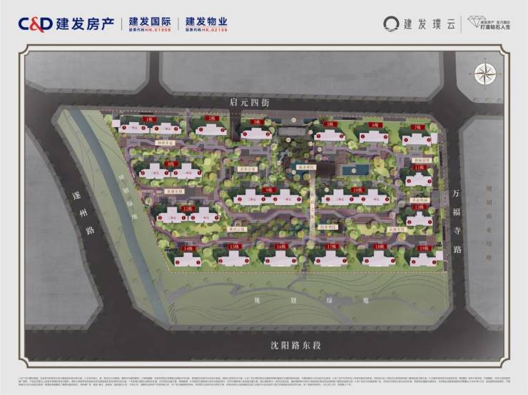 建发璞云将中国画中留白技法融入建筑布局中,项目布局18栋,11F/14F/17F洋房及小高层;全部为T2纯板式阵列布局,居住容积约2.0