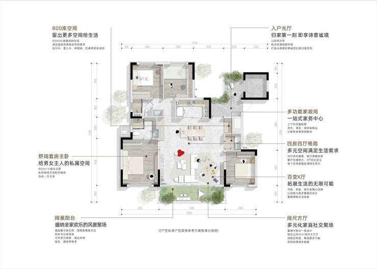 约30%绿化率,低密布局,把更多土地留给自然,全T2板式设计,采光通透,视野无遮,建面约98-124㎡阔景小高层和建面约150㎡公园大宅,尽享城市高阶舒居。
