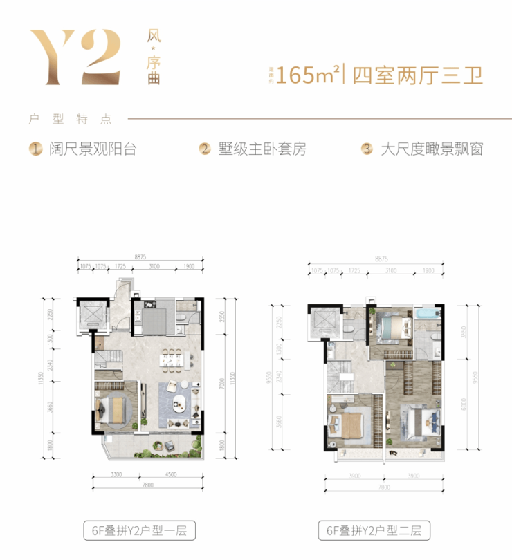 ❇ 6F中叠 户型 165 ㎡ 四房两厅三卫❇