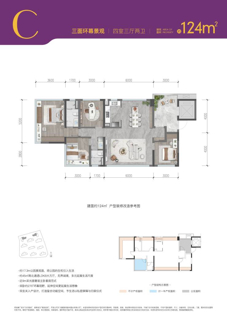 户型面积:约108-124㎡(建筑面积)