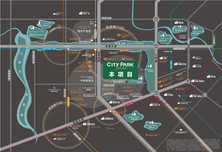 四大TOD(白佛桥 双凤桥 机投桥 武青南路)+5条地铁(3/9/17/29/33号线)
