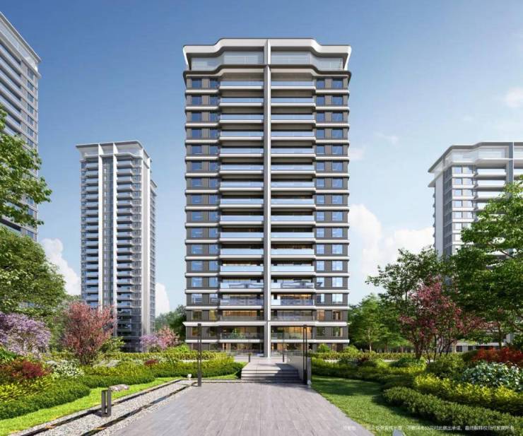 在楼栋建筑的打造上,蜀道翰林府采用铝板和LOW-E玻璃,以更大的窗墙比、银灰与苍穹灰色调构筑起公建化外立面。其中,17F建筑运用横向线条构筑“超跑流线”,25F建筑外立面则形成T字姿态。