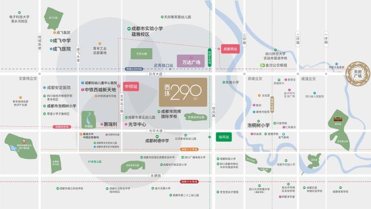 【稀缺地脉】:项目位于成都青羊区西三环外侧日月大道和武青北路的交汇处,上风上水的城西坐拥成都最丰富的自然资源,土拍屡创新高,让城西价值,在“西贵”的传统下变得更加凸显