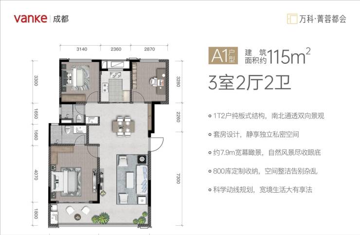 万科企业股份有限公司成立于1984年,《财富》世界500强TOP178,2021年万科在全国实现30万套住宅平稳交付。入蓉30年,服务业主14万+(至2022年6月),以“质量、健康、性能”为核心,全生命周期管控工程质量,向客户交付匠心产品。