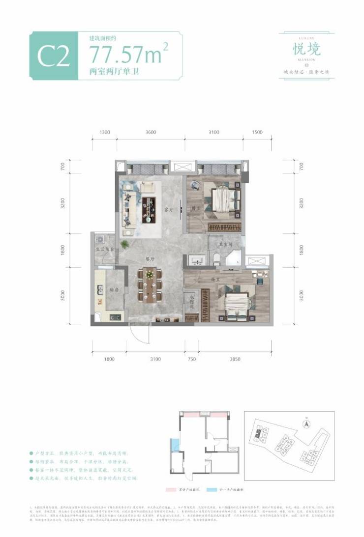 🎊得房率:83-89%,一房一计算,具体以甲方数据为准