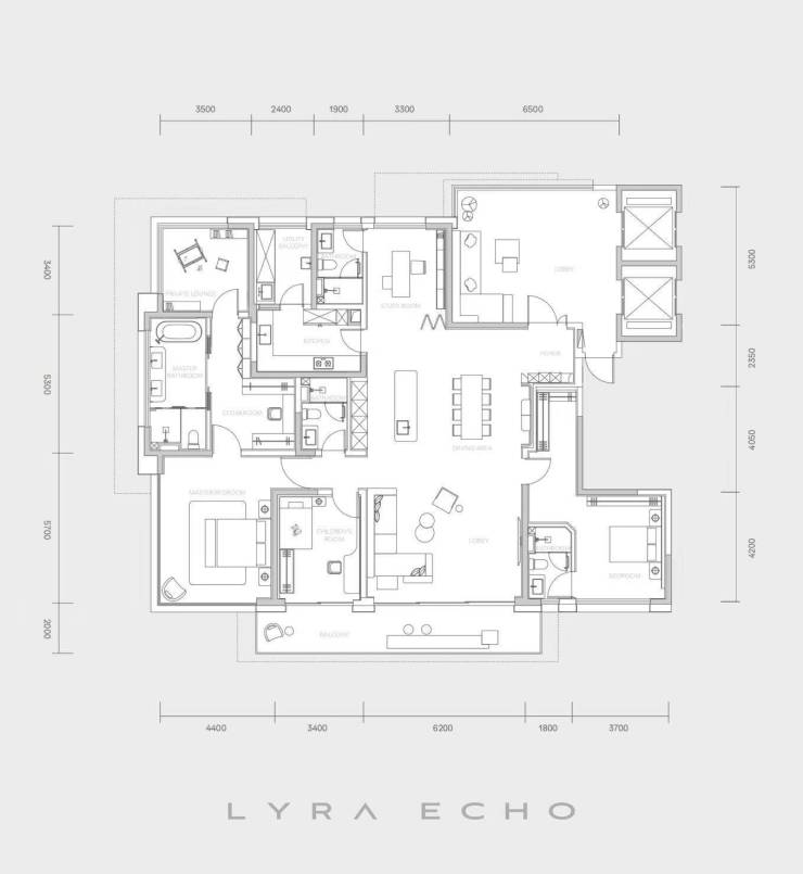 高层有3种户型,4室3厅4卫的260㎡户型、3室3厅4卫1多功能房的286㎡户型以及3室3厅5卫2多功能房加1保姆间的350㎡户型,首批推出192套精装房源,预计3年交付。