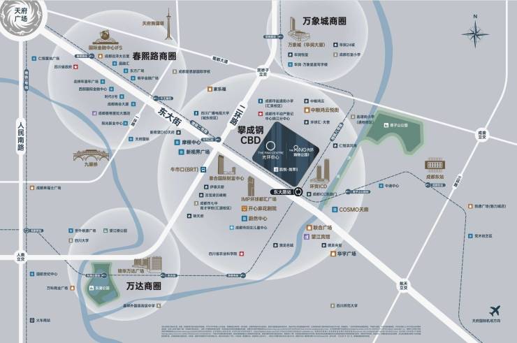 位于“天府门廊”攀成钢板块核心位置,地处东二环和东大路交汇处,周边网络交通,四通八达,毗邻西南最大交通枢纽-成都东客站,与地铁2号线和8号线双轨交汇无缝对接。
