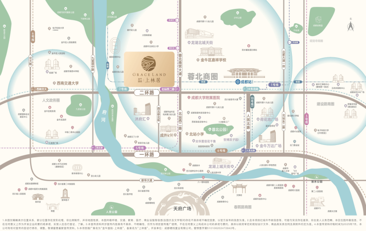 以成都站(在建中)枢纽为核心,1/5号线为贯穿南北多个行政区的交通大动脉,7号线环线链接全城;18号线(三期在建中)运营后将快速直达天府国际机场;以成都站为起点的成渝中线高铁,将串联双城1小时交通圈。上林居距地铁5/7号线双地铁口。
