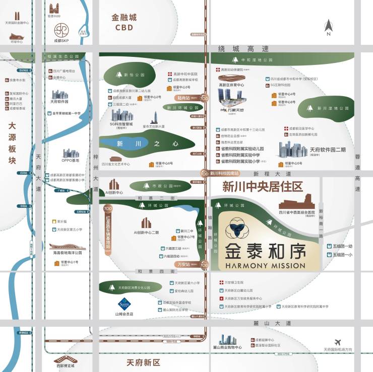 【缤纷商圈的新川】华润万象天地(2025年建成)、8大邻里中心涵盖超市、图书馆、文化活动中心、健身、社区养老等全业态全龄段功能,近享便利快捷消费。