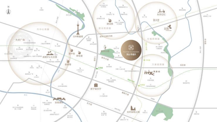 ★ 三横双地铁:一环、二环、中环路; 万年路站(8号线)/双桥路站(4号线、8号线);