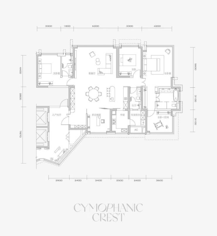 高层有3种户型,4室3厅4卫的260㎡户型、3室3厅4卫1多功能房的286㎡户型以及3室3厅5卫2多功能房加1保姆间的350㎡户型,首批推出192套精装房源,预计3年交付。