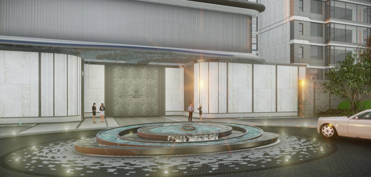 奢雅建筑,都市封面:融汇全球高奢酒店设计理念,采用大面积双层Low-E玻璃全封窗,呈鉴钻石光感幕墙。以钢琴为灵感,凝练优雅的格栅塔冠同步通透轻盈的国际高阶建筑,立面线条生长式延伸向上,如同“天使之翼”优雅展翅,为城市呈鉴现代流体美感的天际线。