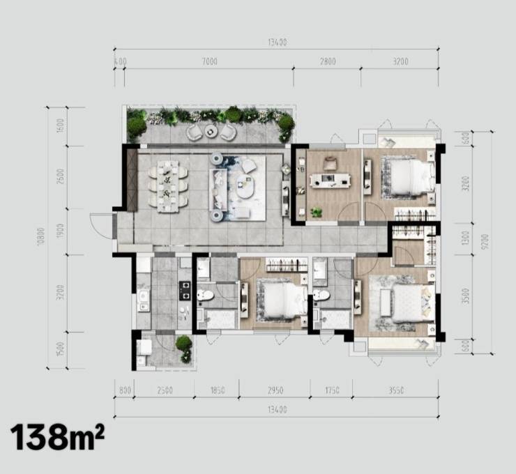 1、3、4号楼:126㎡ (套三)138㎡ (套四)