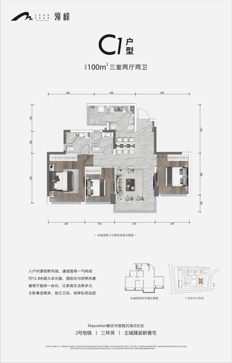 梯户比:2T3户、2T4户